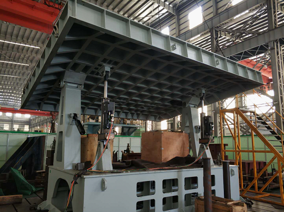 搖擺模擬平臺(tái)由兩個(gè)單缸16噸推力的電動(dòng)缸驅(qū)動(dòng),通過電動(dòng)缸的運(yùn)動(dòng)帶動(dòng)搖擺平臺(tái)轉(zhuǎn)動(dòng)。可以根據(jù)實(shí)際需要,改變搖擺幅度和搖擺周期,或以隨機(jī)幅值和周期運(yùn)動(dòng),以實(shí)現(xiàn)對(duì)海浪的模擬。