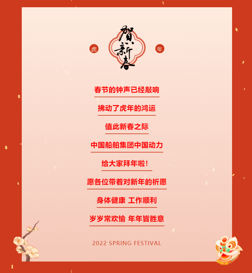 中國船舶集團旗下中國動力恭祝大家新春快樂!——歲歲常歡愉,年年皆勝意。