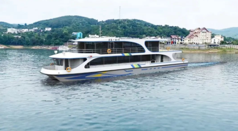 6月24日,東江湖首艘純鋰電動(dòng)力客船建造簽約儀式在湖南省資興市舉行,該客船搭載中國船舶集團(tuán)七一二所電力推進(jìn)系統(tǒng)。