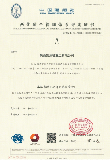 陜柴作為工信部?jī)苫诤瞎芾眢w系貫標(biāo)試點(diǎn)企業(yè),于2019年8月正式啟動(dòng)兩化融合管理體系貫標(biāo)工作,并于2021年9月通過評(píng)定機(jī)構(gòu)審核取得評(píng)定證書,2022年7月通過評(píng)定機(jī)構(gòu)監(jiān)督審核,目前體系正常有效運(yùn)行。