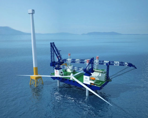 華夏金租兩座1200噸自升式風電安裝平臺入級中國船級社(CCS),船體總長106.6米,型寬44.2米,型深8.45米,設計吃水5米,最大作業水深60米,最大吊裝高度185米,適用于無限航區航行和作業要求。該平臺采用流線型船艏,方型艉部,全焊接鋼質船體,中部雙層底的駁船船型,由船體、4個圓柱樁腿、4套液壓插銷式升降系統等組成,艏部左舷設置1臺1200噸繞樁式主起重機,艉部左舷設置1臺300噸繞樁式輔起重機。該平臺為全電力驅動,具有輔助操縱、推進功能和DP-1動力定位能力,可實現從碼頭到海裝機位的一體化運輸吊裝。