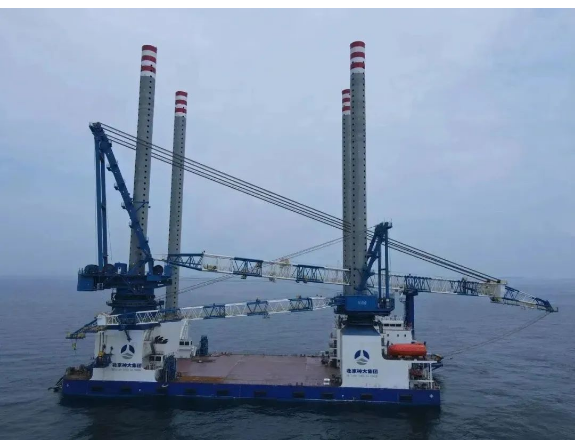 近日,由中國船舶集團旗下武漢船機總包建造的1200噸風電安裝平臺一座成功“首秀”、一座順利交付。