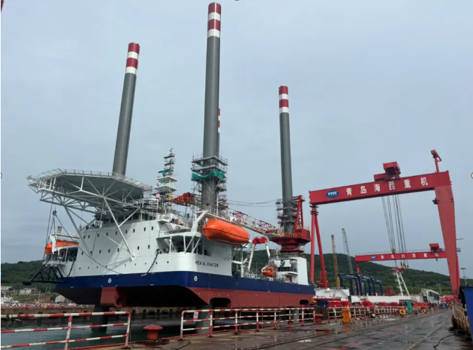 近日,由中國船舶集團旗下中國動力子公司武漢船機建造的TYPE 3型平臺“HEA AL KHATEM”完成了最后一根樁腿松鉤,標志著該項目平臺主體全部完工。