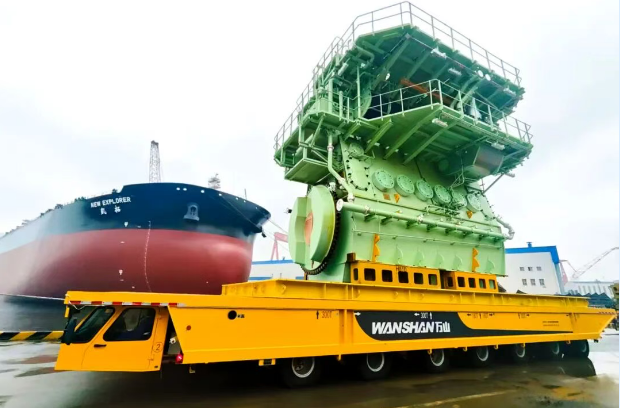 10月11日,搭載6G60MEC #56 主機的600噸平板車緩緩駛出中船集團旗下中國動力子公司中船發動機大柴公司總裝制造部大門,標志著大柴公司首次實現該型主機的整機發運,實現了公司在大型主機產品發運能力上的新突破。