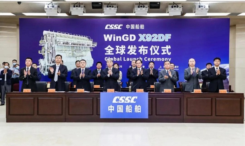 ????5月26日,由中國船舶旗下溫特圖爾發動機有限公司(WinGD)自主研發,上海中船三井造船柴油機有限公司建造,中船海洋動力技術服務有限公司保障的目前世界最大船用雙燃料低速機WinGD X92DF正式向全球發布。中國船舶集團董事長雷凡培出席發布儀式并講話,總經理楊金成主持儀式。國家相關部委、地方政府、船級社、航運公司、造船公司等有關領導和專家,中國船舶集團副總經理馮永強、孫偉、杜剛出席發布儀式。