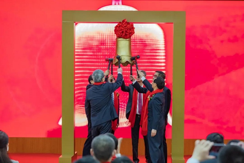 上午9點25分,中國船舶集團黨組書記、董事長雷凡培,黨組副書記、總經理楊金成,黨組成員、副總經理姜仁鋒,邯鄲市委副書記、市長張維亮,海通證券黨委書記、董事長周杰,中國船舶集團旗下漢光重工黨委書記、董事長王孟軍共同敲響上市寶鐘。