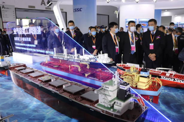????中國船舶集團行業領先的全產業鏈產品和驚艷的舞臺布置引起了與會嘉賓的強烈興趣,在中國船舶集團黨組成員、副總經理孫偉陪同下,中國船舶工業行業協會會長郭大成,工業和信息化部裝備二司副司長徐春榮,中國船東協會常務副會長張守國、中國造船工程學會副理事長李國安、遼寧省工業和信息化廳副廳長路通、中遠海運重工有限公司董事長、總經理梁巖峰、中國船級社副總裁孫峰等嘉賓參觀了中國船舶集團的展區,并詳細了解了中國船舶集團在產品研發、科技創新、市場開拓等方面取得的最新進展。