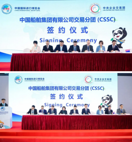 11月6日上午,中國(guó)船舶集團(tuán)舉行第三屆進(jìn)博會(huì)國(guó)資委中央企業(yè)交易團(tuán)集中簽約儀式,中國(guó)船舶集團(tuán)所屬7家企業(yè)與19家合作商進(jìn)行了23個(gè)項(xiàng)目簽約,簽約總金額共計(jì)1.14億美元。中國(guó)船舶集團(tuán)黨組成員、副總經(jīng)理錢建平參加簽約儀式。