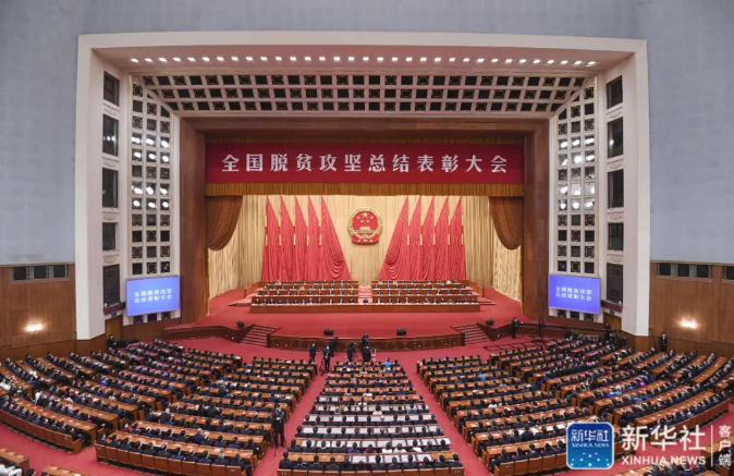 2月25日上午,全國脫貧攻堅總結表彰大會在北京人民大會堂隆重舉行。中共中央總書記、國家主席、中央軍委主席習近平向全國脫貧攻堅楷模榮譽稱號獲得者頒獎并發表重要講話。大會還對全國脫貧攻堅先進個人、先進集體進行表彰。