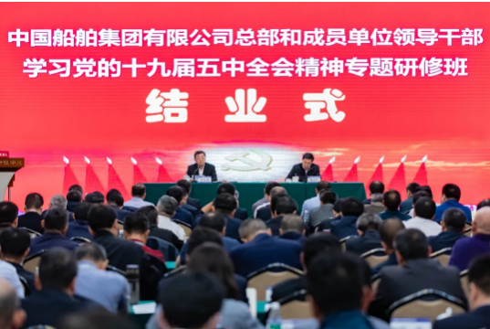 4月23日,中國船舶集團有限公司總部和成員單位領導干部學習黨的十九屆五中全會精神和黨史學習教育專題研修班圓滿結業。培訓期間,中國船舶集團黨組書記、董事長雷凡培以《深入貫徹落實習近平總書記重要指示批示精神 努力加快建設世界一流船舶集團》為題給全體學員們講授了第一課,中國船舶集團黨組副書記、總經理楊金成,黨組成員、副總經理孫偉、盛紀綱以及相關部門負責人先后出席各期結業式并聽取了學員們的學習匯報。