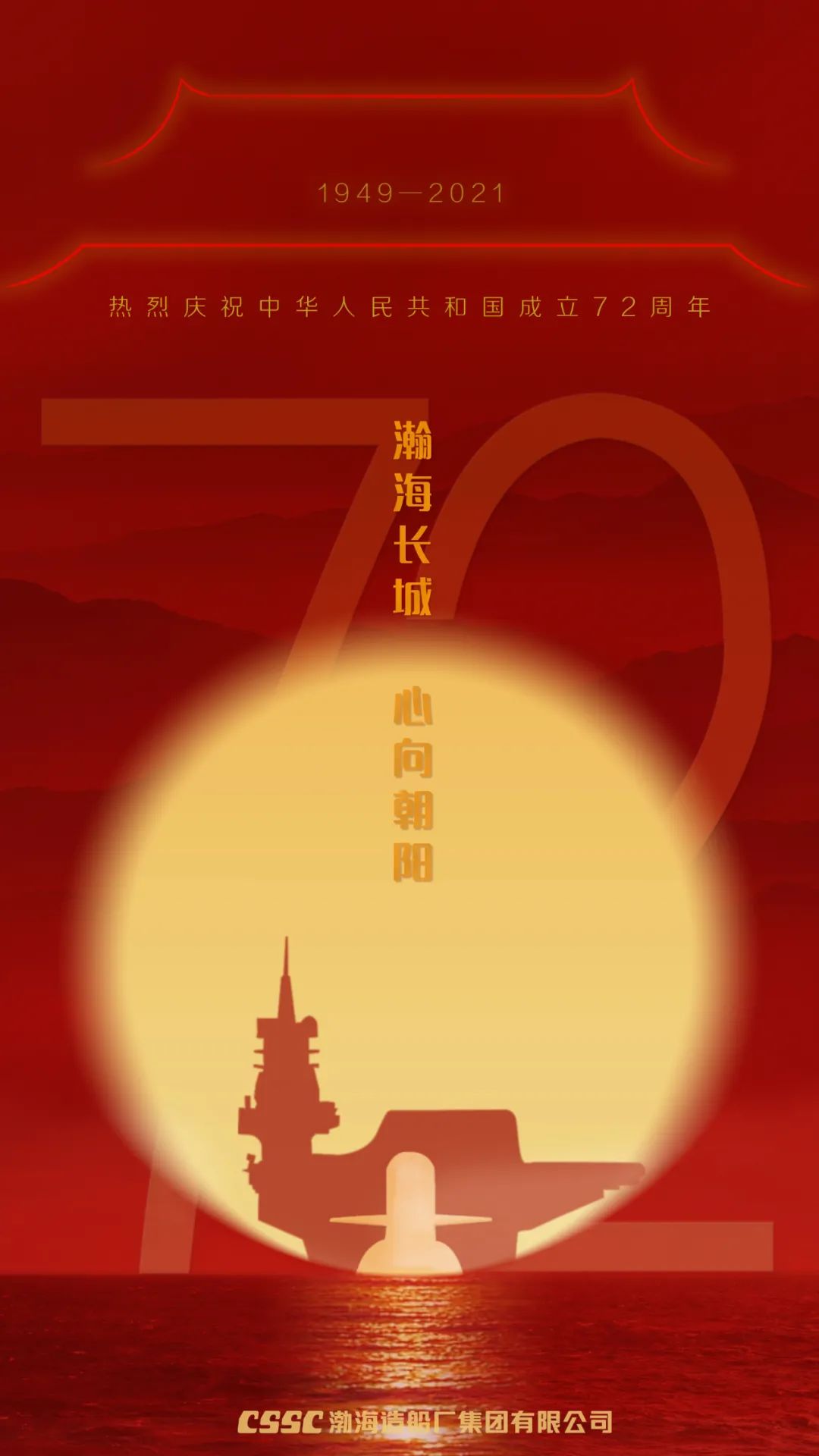 一輪紅日從國之滄海升起,捍衛(wèi)萬里海疆的海上長城深海逐浪,其后盾是強大的祖國母親,中國船舶渤船集團祝新中國七十二歲生日快樂!強軍有我,強國有我!