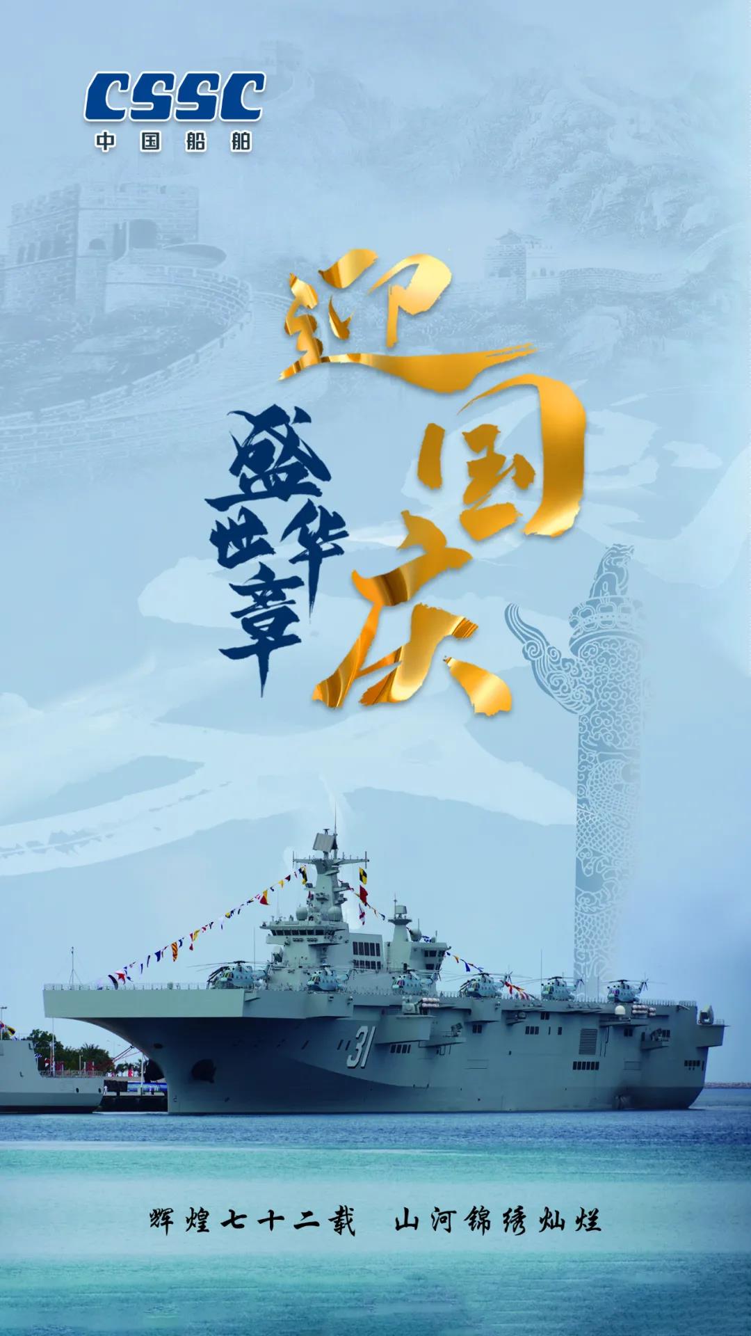 今天,我們迎來新中國72周年華誕。作為我國海軍裝備建設(shè)的主力軍,中國船舶大船集團將不忘初心,牢記使命,堅定貫徹海洋強國、制造強國、科技強國國家戰(zhàn)略,聚焦主責主業(yè)、聚力興裝強軍,為實現(xiàn)中華民族偉大復(fù)興的中國夢而不懈奮斗。