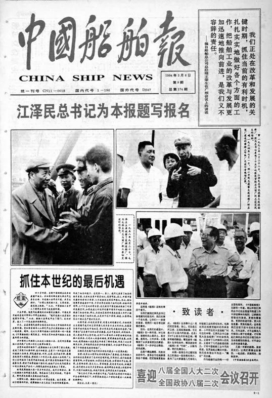 1994年3月6日,《中國(guó)船舶報(bào)》首次啟用江澤民同志親筆題寫的報(bào)頭。