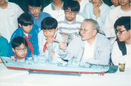 潘鏡芙1996年在浦南中學為學生們講艦船