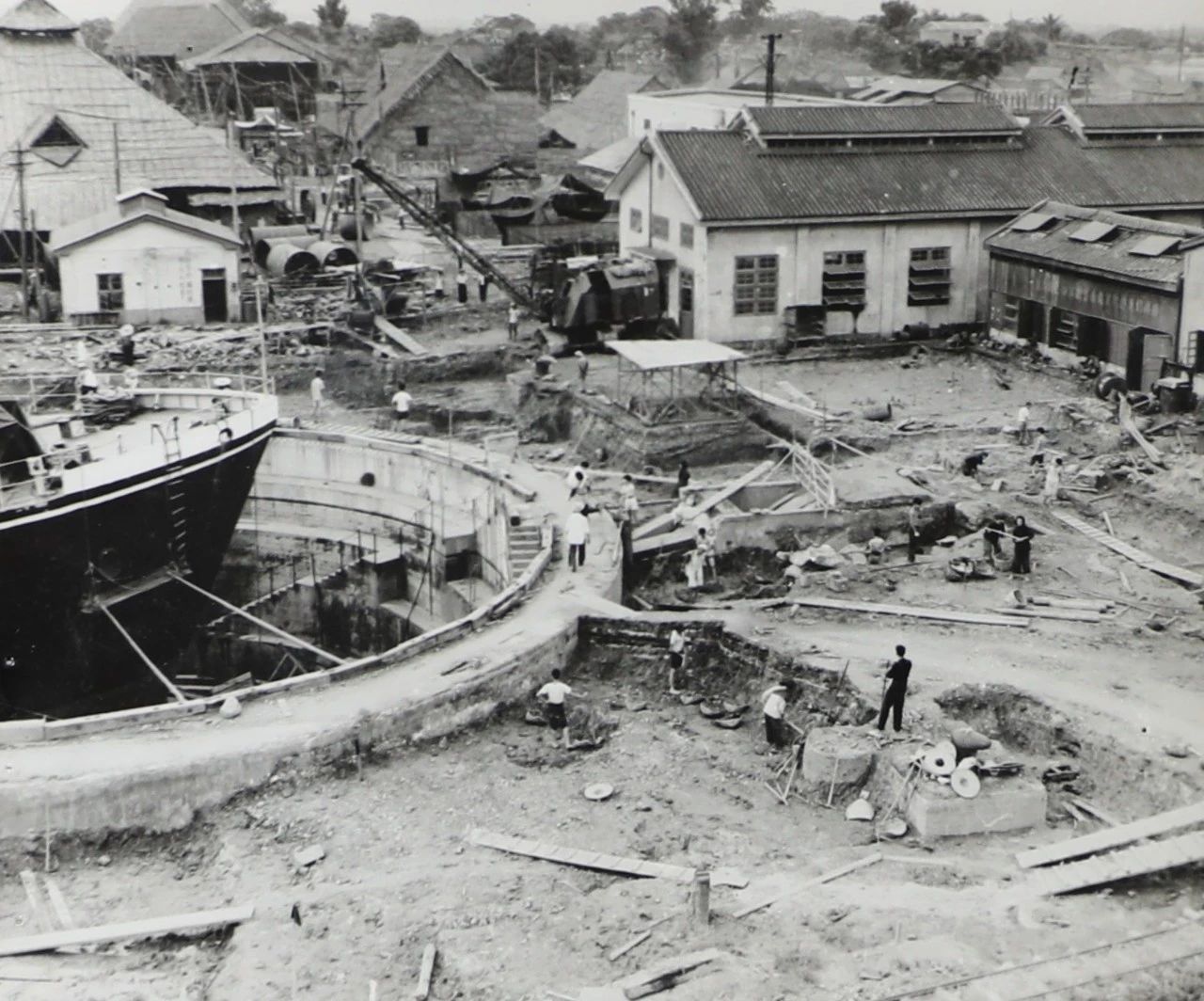1958年廣州,1958年,廣船國際的前身廣州造船廠的造船塢,圖中的履帶式起重機是廣州造船廠主要的起重設備。