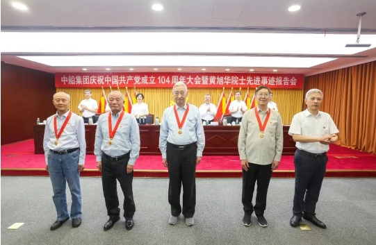 7月1日,中國船舶集團有限公司召開慶祝中國共產黨成立104周年大會暨黃旭華院士先進事跡報告會。中央第七指導組成員、國務院國資委黨建局相關同志出席會議。中船集團黨組書記、董事長徐鵬出席會議并講話,帶領與會人員重溫入黨誓詞,并為老黨員代表頒發“光榮在黨50年”紀念章。黨組副書記、董事、總經理王國強主持會議。黨組副書記、董事賈海英宣讀了《關于在全集團深入開展黃旭華院士先進事跡“四學四做”活動的倡議書》。中船集團在滬黨組成員參加會議。